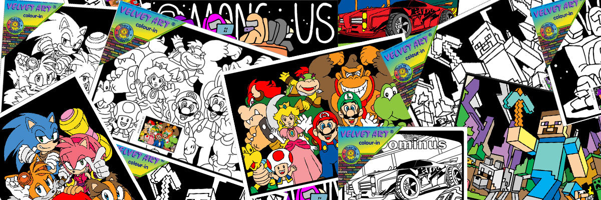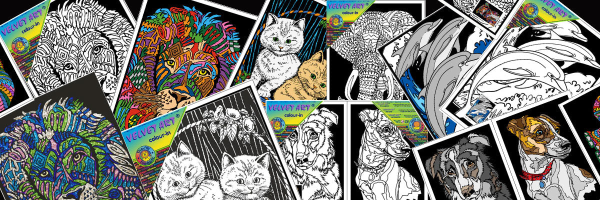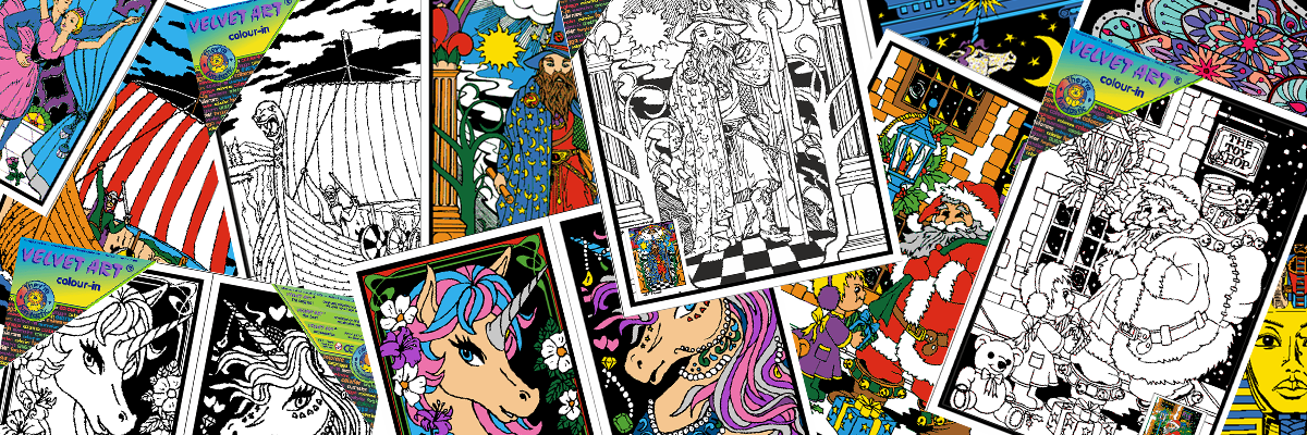 Children love to colour, glitter and stick. Many children have loved to colour and stick since Velvet art started 35 years ago.